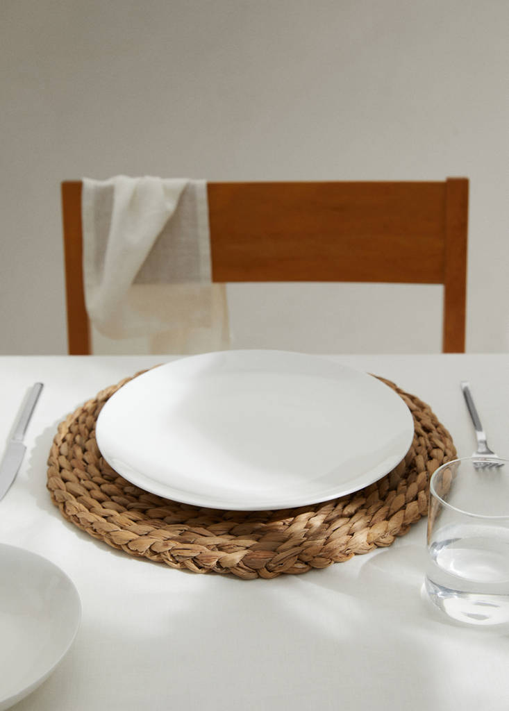 Diámetro 35cm. Fibras naturales. Tejido 100% jacinto de agua. Diseño trenzado. Diseño redondo. Se vende por unidad