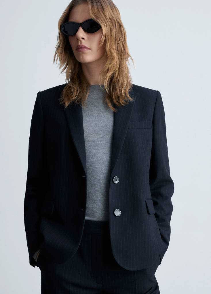 Diseño estructurado. Diseño recto. Diseño raya diplomática. Manga larga con puños abotonados. Cuello pico con solapa. Dos bolsillos de ribete con solapa laterales. Un bolsillo de ribete en el pecho. Cierre de botones en la parte delantera. Forro interior