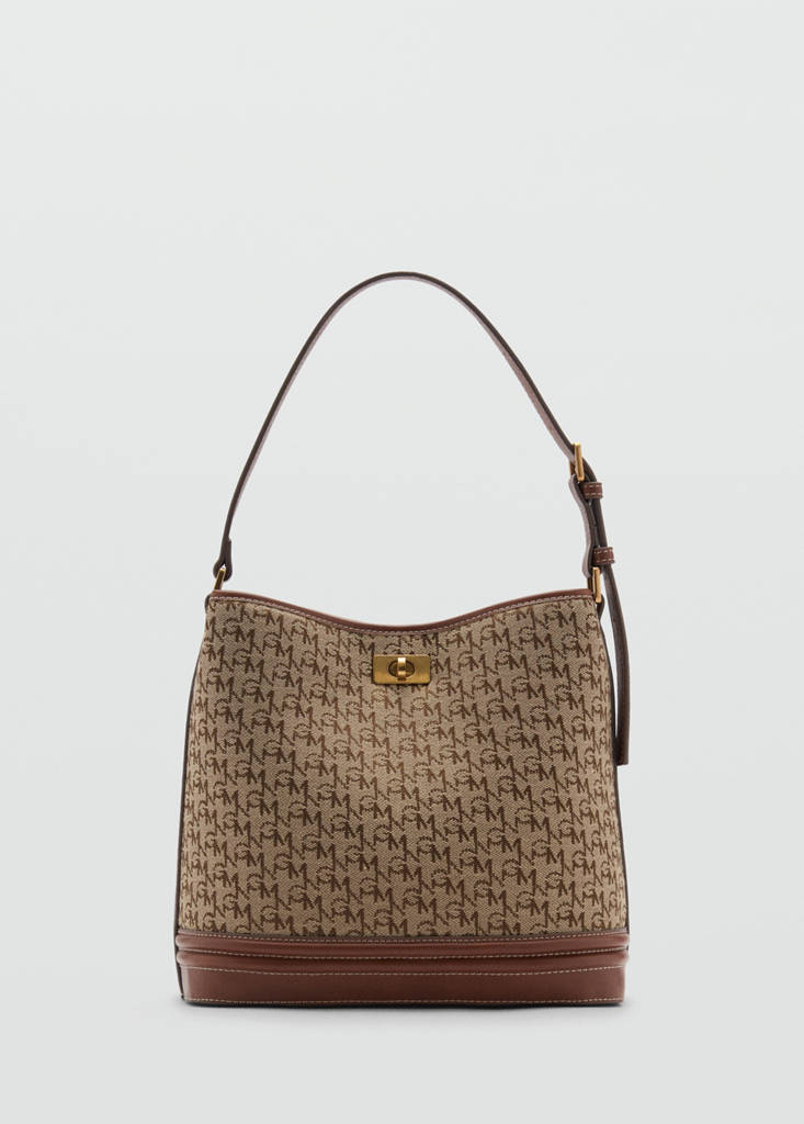 Tamaño mediano. Estampado Mangologo. Asa de hombro. Asa de hebillas ajustable. Cierre de tuerca. Bolsillo interior. Forro interior