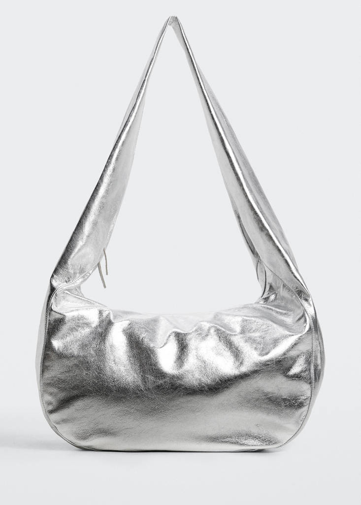 Confección y tejido premium. 100% piel ovino. 100% piel napa. Asa corta. Efecto metalizado. Diseño tote. Cierre de cremallera doble. Tamaño grande. Forro interior