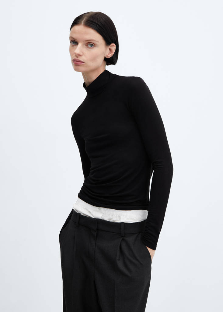 Camiseta manga larga cuello altoHistórico de preciosPrecio inicial tachado [12,99 € ]12,99 €Segundo precio tachado [8,99 € ]8,99 €Precio actual [3,49 € ]3,49 €-73 %Selecciona un colorNegroLa modelo lleva la talla S y mide 177cm.Selecciona tu tallaXXSNo disponible ¡Lo quiero!XSNo disponible ¡Lo quiero!SNo disponible ¡Lo quiero!MNo disponible ¡Lo quiero!LNo disponible ¡Lo quiero!XLNo disponible ¡Lo quiero!XXLNo disponible ¡Lo quiero!MedidasAvísameTejido elástico. Slim fit. Cuello alto. Manga larga. Detalle fruncido. Looks de oficina. Diseño entalladoDetalles, composición y cuidadosDisponibilidad en tienda