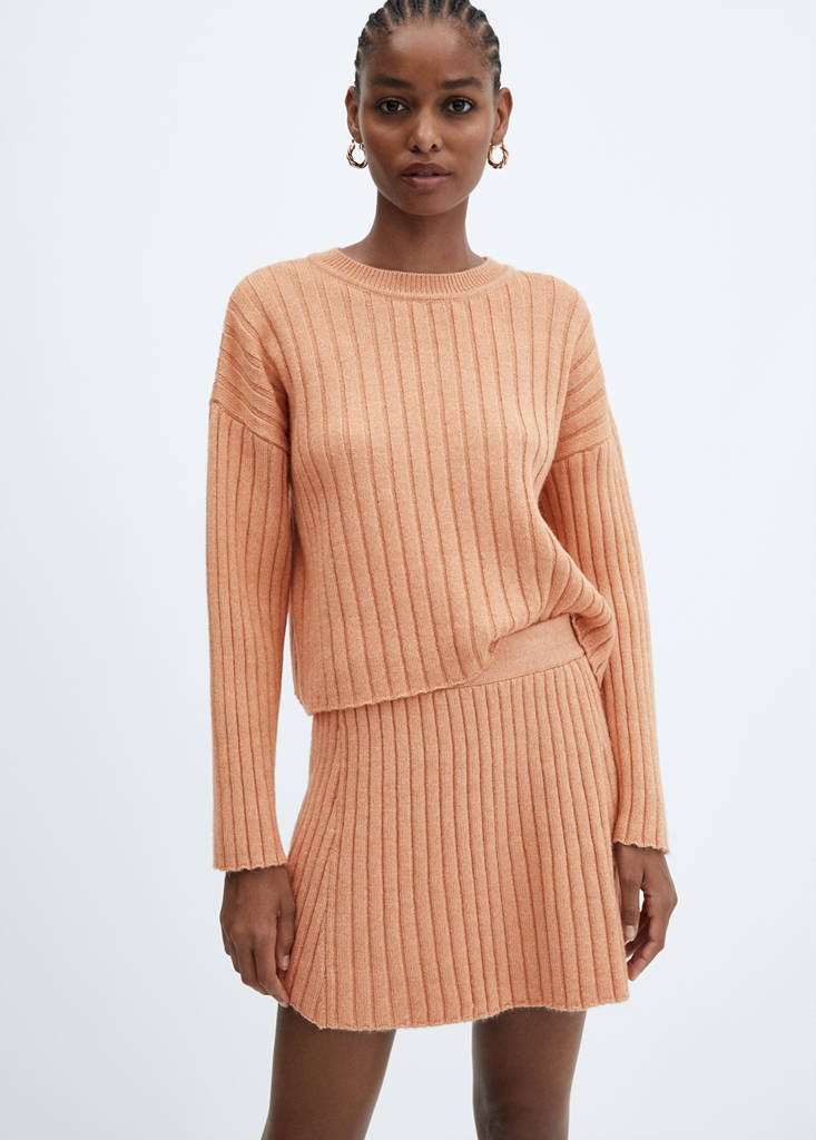Punto medio. Tejido de punto de canalé. Diseño recto. Cuello redondo. Manga larga. Sin cierre. Total look. Looks de oficina