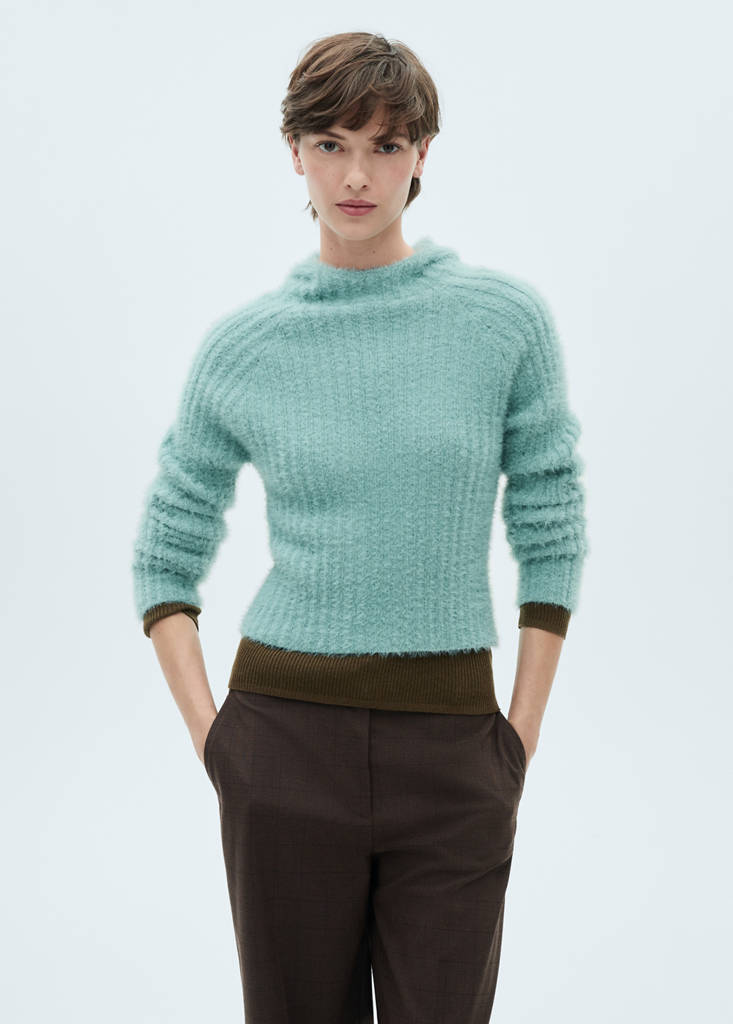 Acabado suave. Diseño recto. Tejido de punto de canalé. Tejido de punto fino. Capucha
