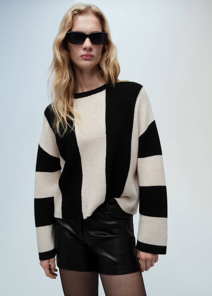Jersey punto rayasHistórico de preciosPrecio inicial tachado [35,99 € ]35,99 €Segundo precio tachado [27,99 € ]27,99 €Precio actual [17,99 € ]17,99 €-50 %Selecciona un colorNegroLa modelo lleva la talla S y mide 178cm.Selecciona tu tallaXSSNo disponible ¡Lo quiero!MNo disponible ¡Lo quiero!LNo disponible ¡Lo quiero!MedidasAñadirTejido de punto. Diseño recto. Diseño de rayas. Cuello redondo. Manga larga. Sin cierreDetalles, composición y cuidadosDisponibilidad en tienda