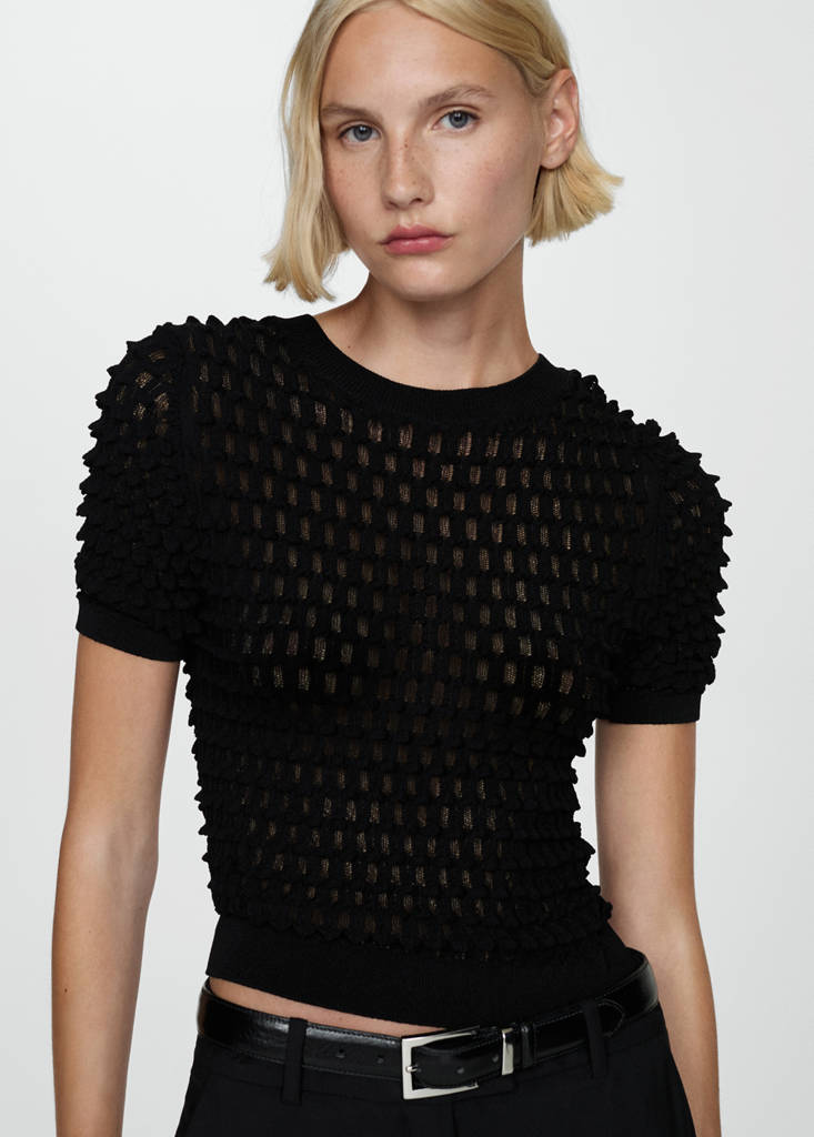 Jersey textura manga cortaHistórico de preciosPrecio inicial tachado [35,99 € ]35,99 €Segundo precio tachado [27,99 € ]27,99 €Precio actual [17,99 € ]17,99 €-50 %Selecciona un colorNegroLa modelo lleva la talla S y mide 179cm.Selecciona tu tallaSNo disponible ¡Lo quiero!MNo disponible ¡Lo quiero!LNo disponible ¡Lo quiero!MedidasAvísameTejido de punto fino. Tejido con textura. Cuello redondo. Manga corta. Diseño entalladoDetalles, composición y cuidadosDisponibilidad en tienda