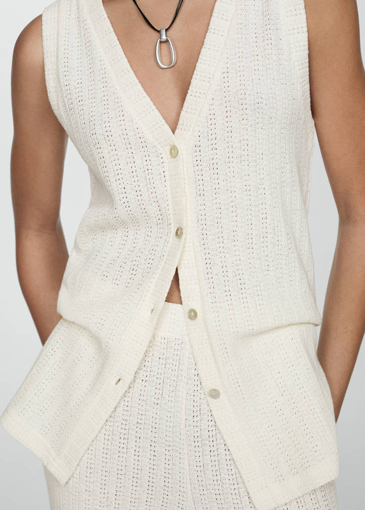 Tejido mezcla de algodón. Diseño recto. Diseño largo. Escote de pico. Sin mangas. Total look. Festival Season. Disponible Plus. Tejido de crochet. Cierre delantero con botones