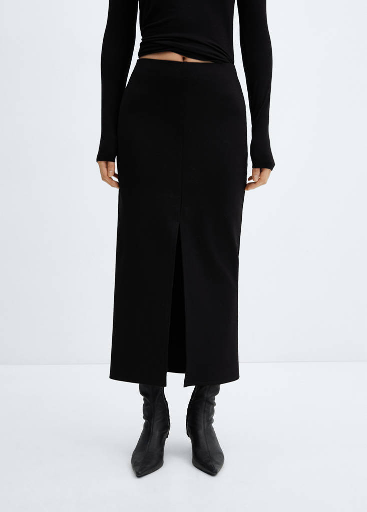 Tejido de punto roma. Diseño recto. Diseño midi. Tiro alto. Cintura con goma elástica. Sin cierre. Abertura en la parte delantera. Disponible Plus. Looks de oficina