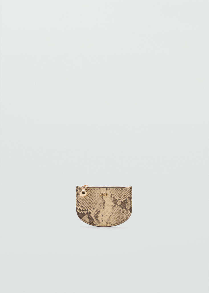 Tamaño pequeño. Estampado de cocodrilo. Múltiples ranuras para tarjetas. Un bolsillo de cremallera. Logo en relieve. Sin cierre