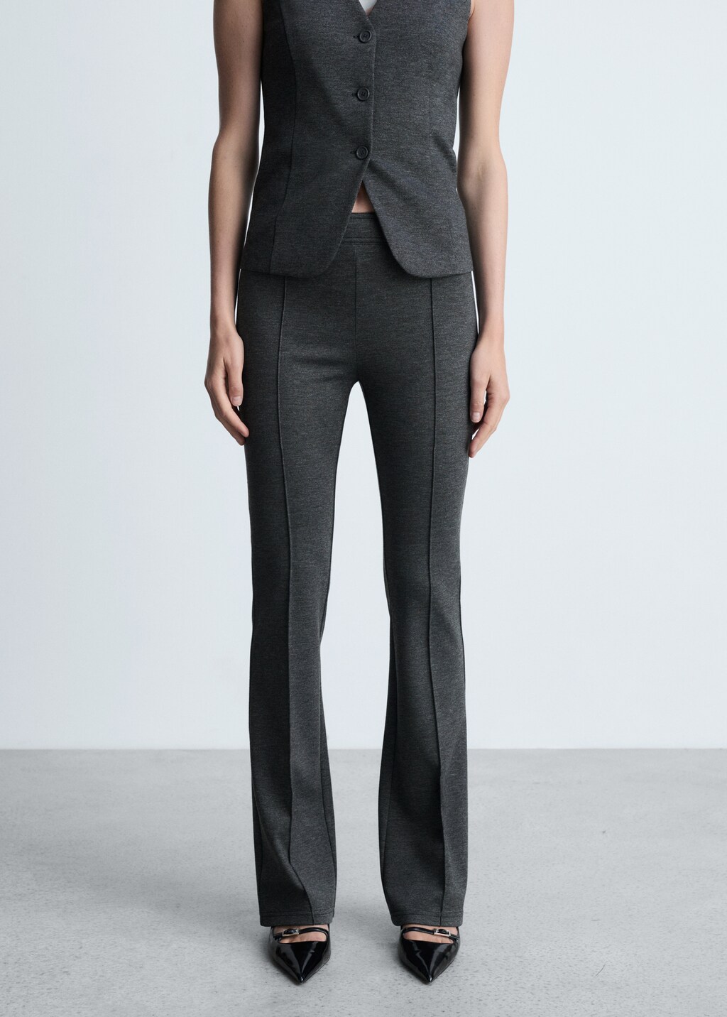 Diseño acampanado. Tiro medio. Detalle de costura. Cierre lateral de cremallera. Total look.