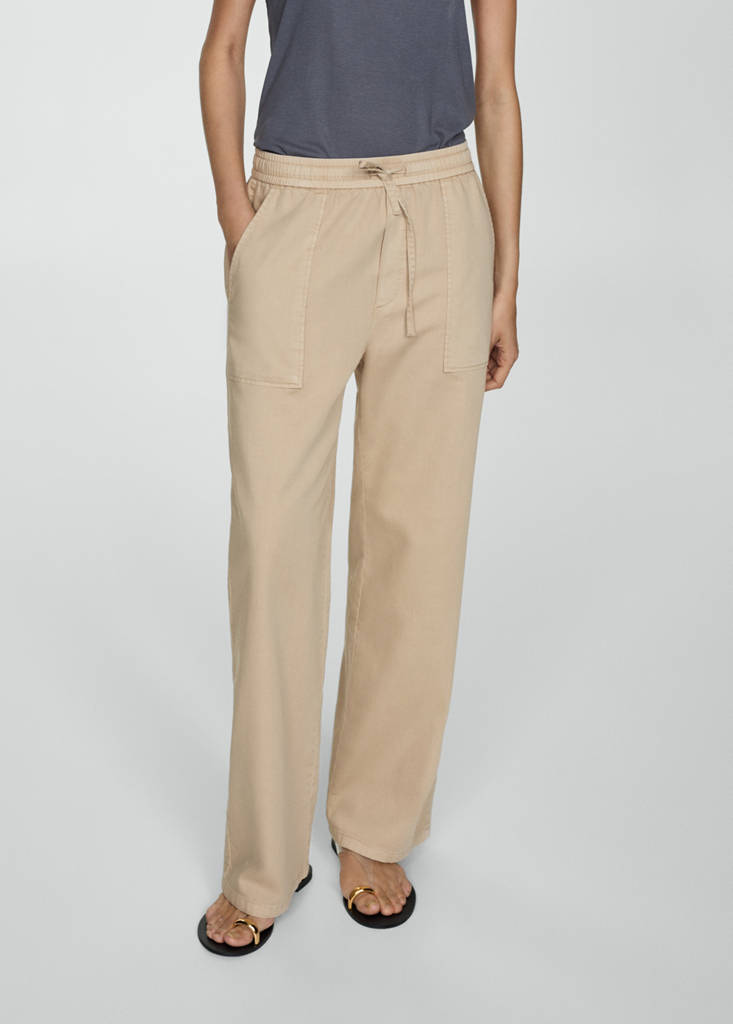 Diseño recto. Diseño largo. Tiro medio. Dos bolsillos delanteros. Dos bolsillos de parche en la parte posterior. Cierre de lazo. Detalle de costura. Tejido 100% algodón. Tejido de algodón estilo tejano vaquero. Dos bolsillos laterales. Cintura elástica con cierre de lazo