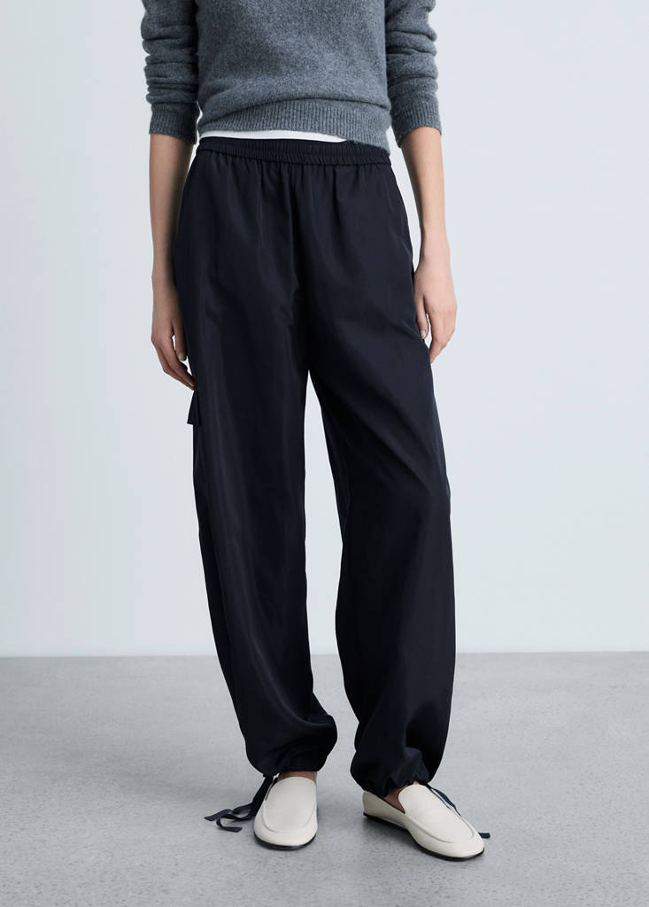 Diseño recto. Diseño estándar. Tiro medio. Cintura con goma elástica. Dos bolsillos laterales. Dos bolsillos de parche y solapa en la pierna. Bajo fruncido regulable. Sin cierre. El color verde es exclusivo online