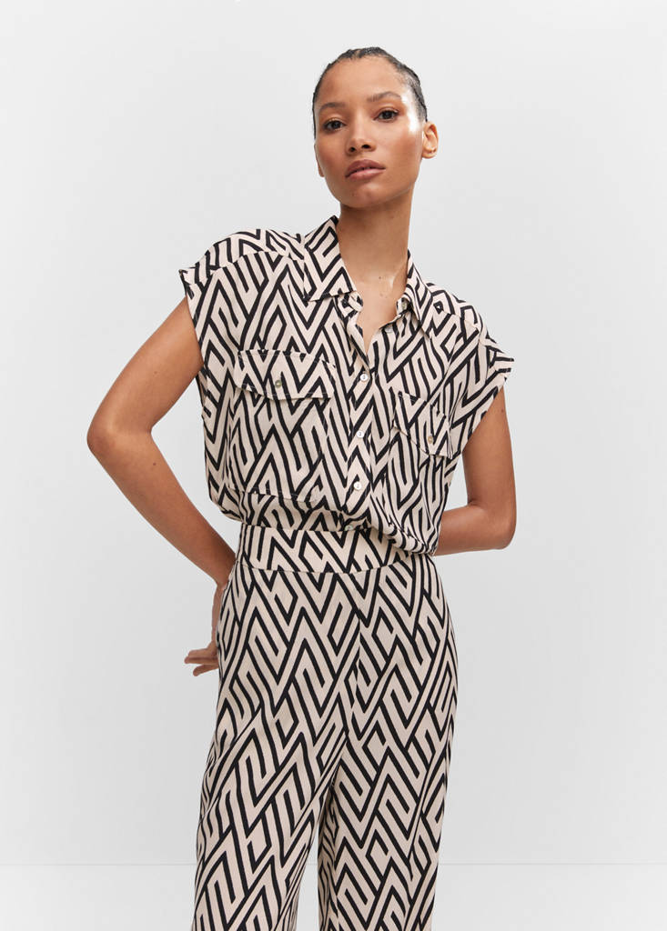 Tejido fluido. Diseño recto. Diseño largo. Estampado geométrico. Cintura con goma elástica. Bolsillos laterales. Total look. Disponible Plus