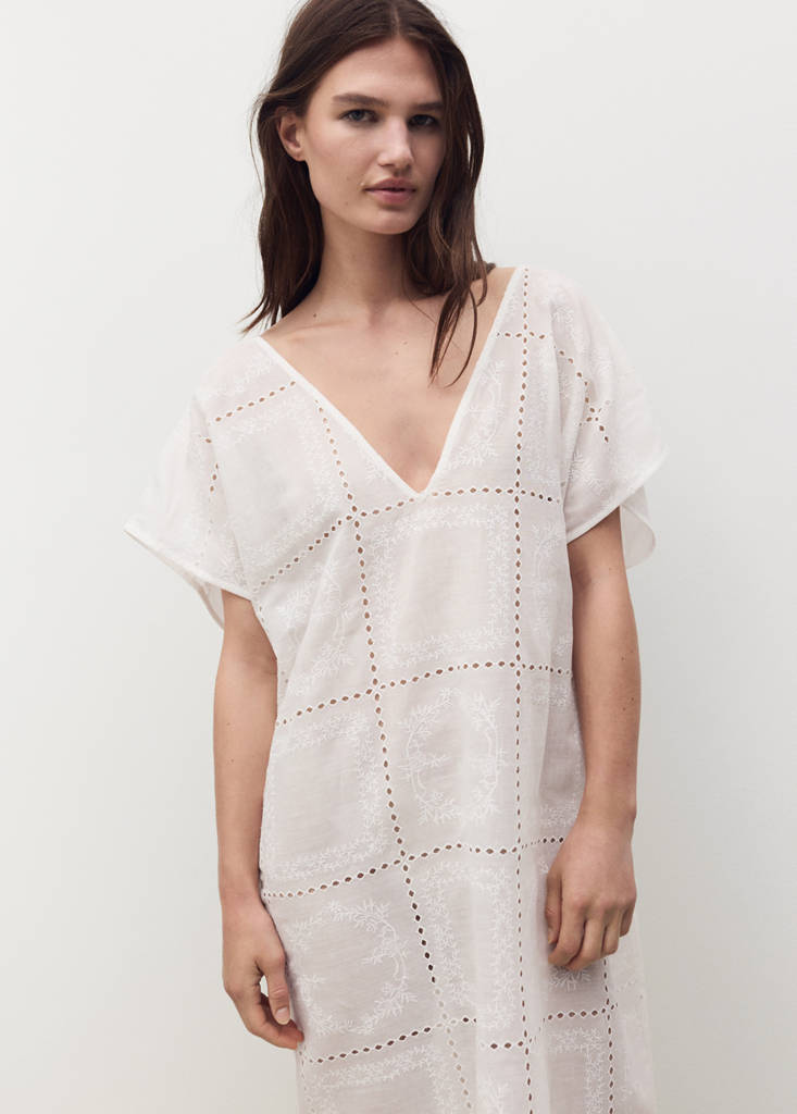 100% ramio. Diseño midi. Diseño recto. Manga corta. Cuello de pico. Detalles bordados. Combina con los pantalones a conjunto