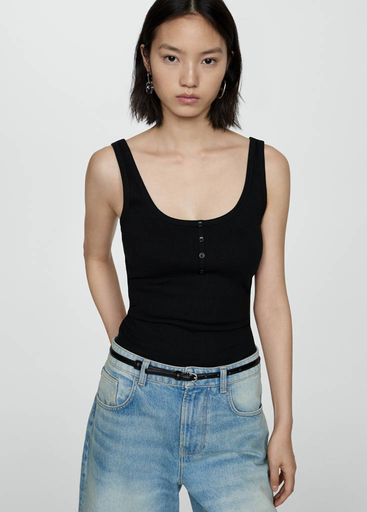 Top tirantes botonesHistórico de preciosPrecio inicial tachado [12,99 € ]12,99 €Precio actual [8,99 € ]8,99 €-31 %Selecciona un colorNegroLa modelo lleva la talla S y mide 180cm.Selecciona tu tallaXXSNo disponible ¡Lo quiero!XSNo disponible ¡Lo quiero!SNo disponible ¡Lo quiero!MNo disponible ¡Lo quiero!LNo disponible ¡Lo quiero!XLNo disponible ¡Lo quiero!XXLNo disponible ¡Lo quiero!AvísameDiseño recto. Escote cuadrado con detalle de botones. Sin mangas. Tirantes finos. Tejido 100% algodón. Diseño entalladoDetalles, composición y cuidadosDisponibilidad en tienda