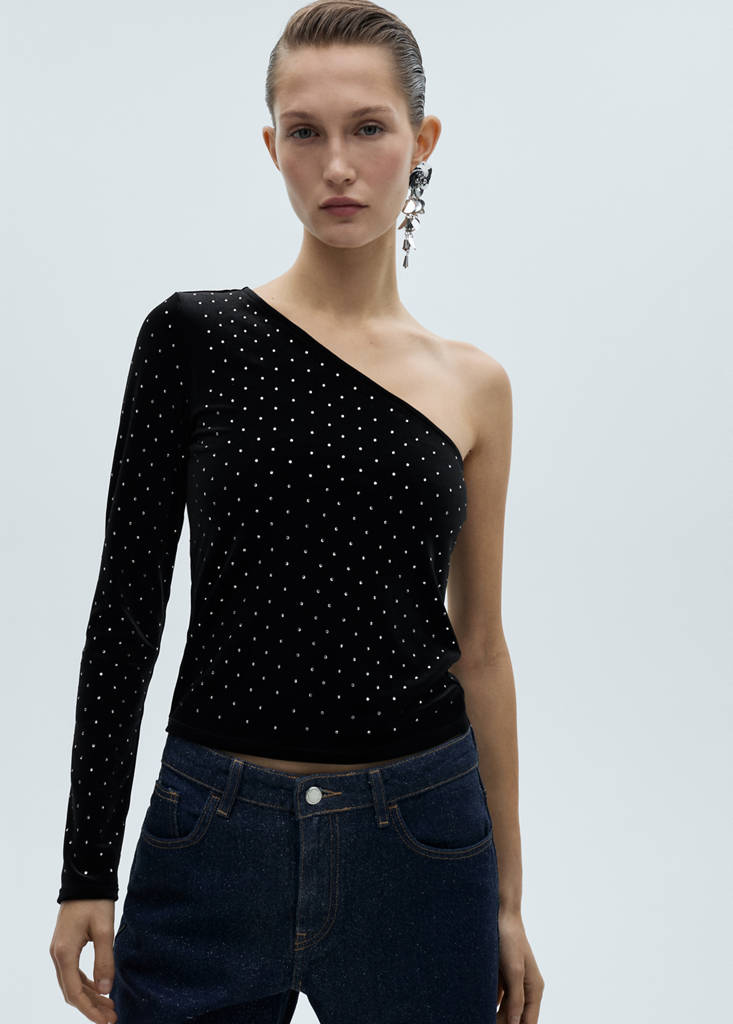 Top terciopelo asimétrico strass