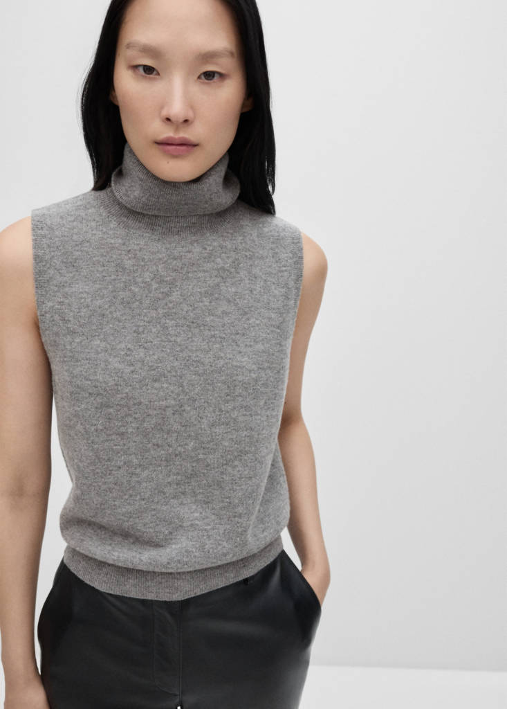 Sin mangas. Tejido de punto fino. Terminaciones de canalé. Colección Selection. Tejido 100% lana. Cuello vuelto. Diseño recto