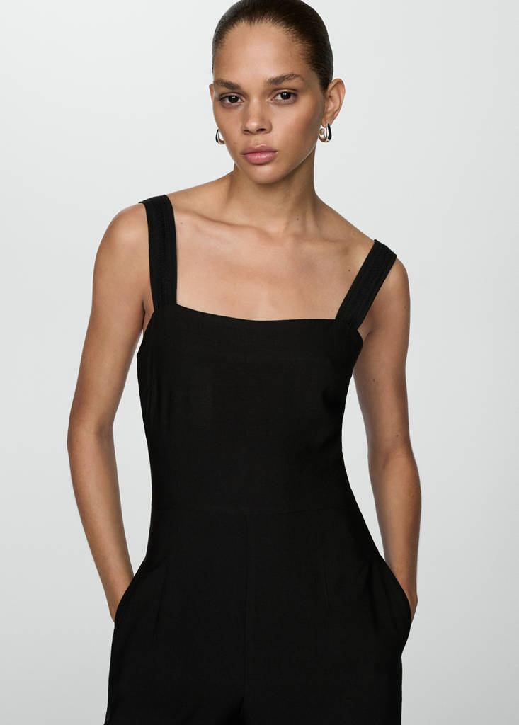 Tejido fluido. Diseño recto. Diseño largo. Escote cuadrado. Sin mangas. Tirantes finos. Cierre oculto de cremallera lateral
