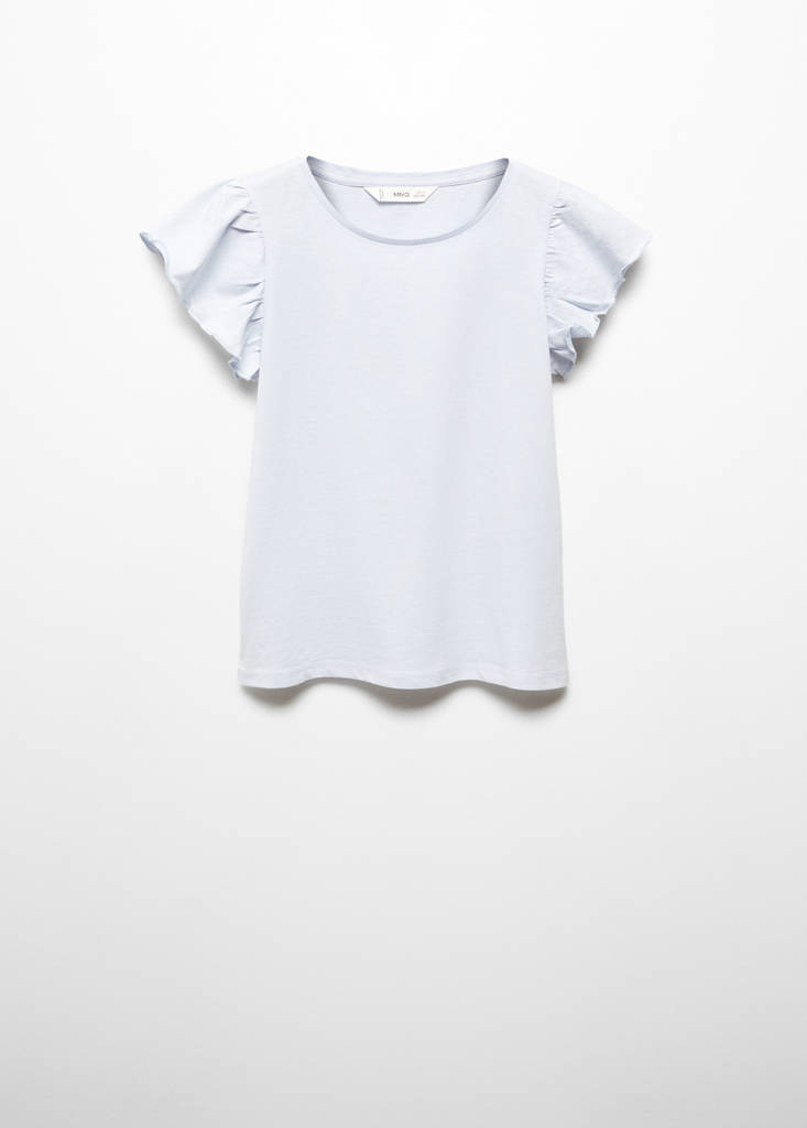 Camiseta volantes manga cortaHistórico de preciosPrecio inicial tachado [6,99 € ]6,99 €Segundo precio tachado [4,99 € ]4,99 €Precio actual [1,99 € ]1,99 €-72 %Selecciona un colorAzul celesteSelecciona tu talla5-6 años (116cm)No disponible ¡Lo quiero!7-8 años (128cm)No disponible ¡Lo quiero!9-10 años (140cm)No disponible ¡Lo quiero!11-12 años (152cm)No disponible ¡Lo quiero!13-14 años (164cm)No disponible ¡Lo quiero!MedidasAvísame100% algodón. Diseño recto. Volantes en las mangas. Manga corta. Cuello redondo. Tejido ligero. Sin cierreDetalles, composición y cuidadosDisponibilidad en tiendaCualidades del artículoAlgodón recicladoAl menos 20 %Esta fibra se obtiene a partir de restos textiles pre y post consumo que se transforman en nuevos tejidos.