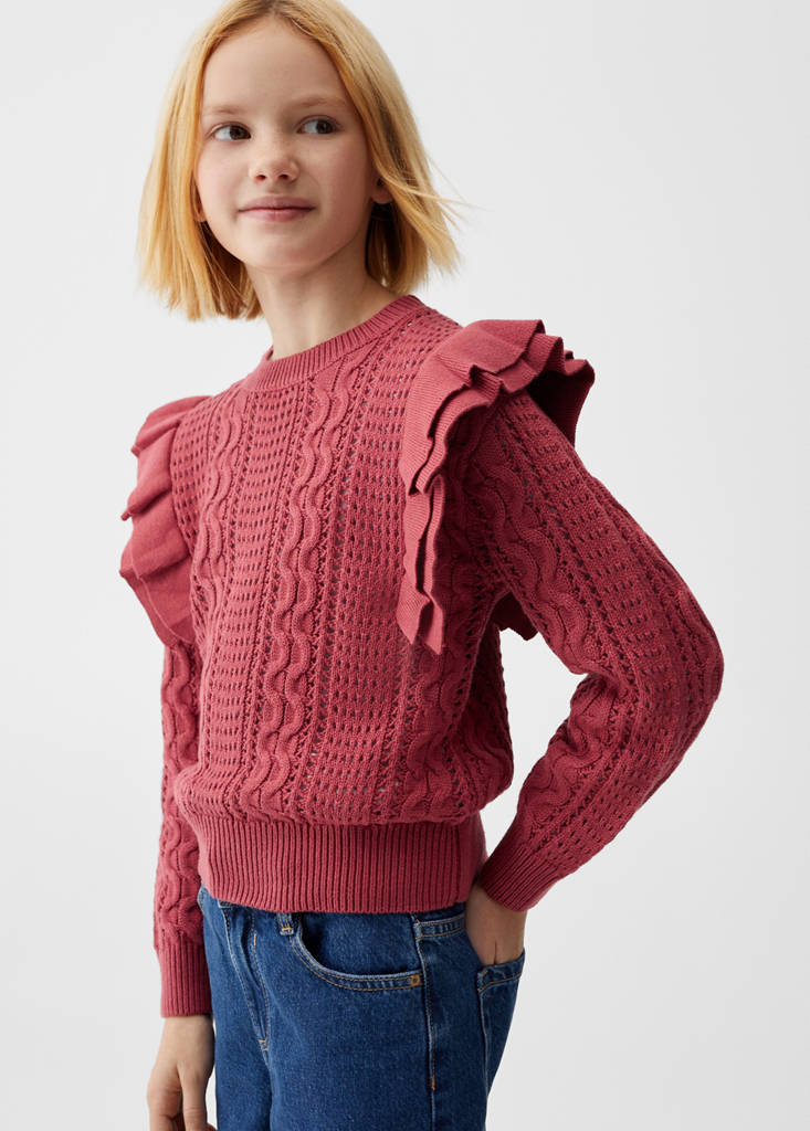 Tejido de algodón. Tejido de punto calado. Diseño recto. Diseño volantes. Cuello redondo. Manga larga. Sin cierre