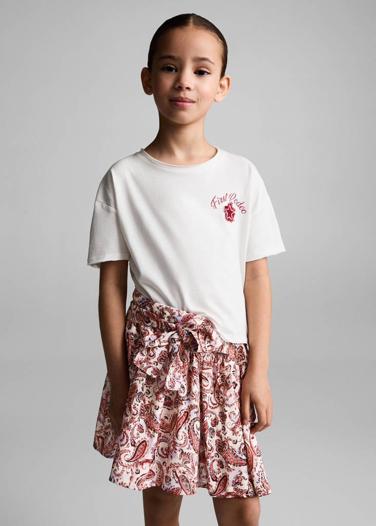 Estampada. Diseño corto. Diseño volantes. Cintura con goma elástica. Cinturón decorativo. Sin cierre. Tejido de viscosa