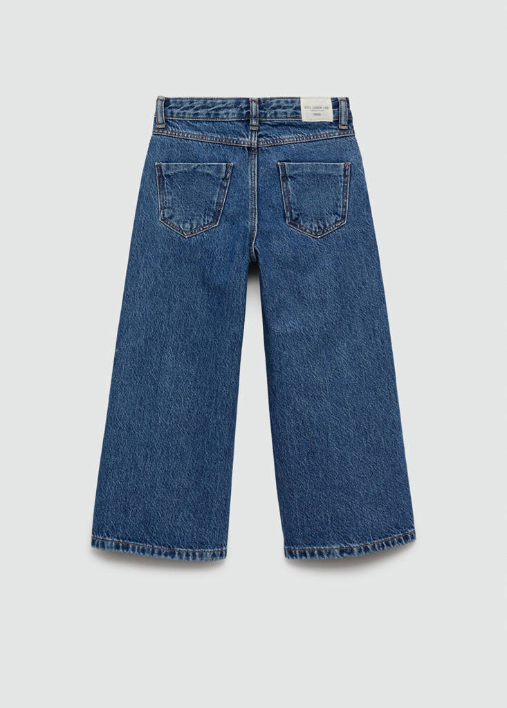 Tejido de algodón estilo tejano vaquero. Tiro alto. Diseño recto. Costuras decorativas. Cinco bolsillos. Diseño culotte. Cierre de cremallera y botón
