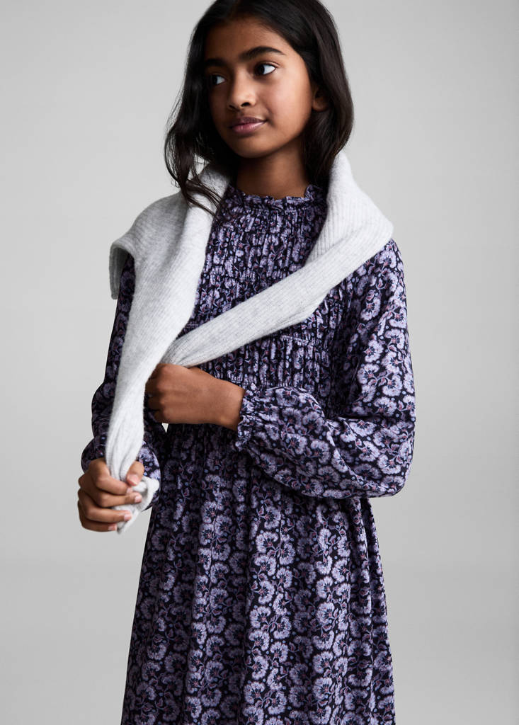 Tejido fluido. Diseño recto. Estampado floral. Detalle fruncido. Cuello redondo. Cierre de botón en la parte posterior. Tejido de viscosa