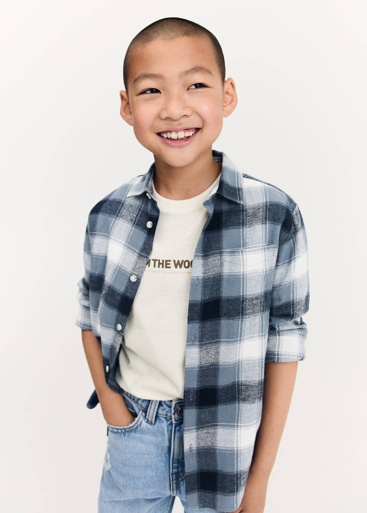 Colección Vuelta al cole. 100% Algodón. Cuello camisero. Manga larga abotonada. Bolsillo de parche. Cierre delantero con botones. Diseño recto