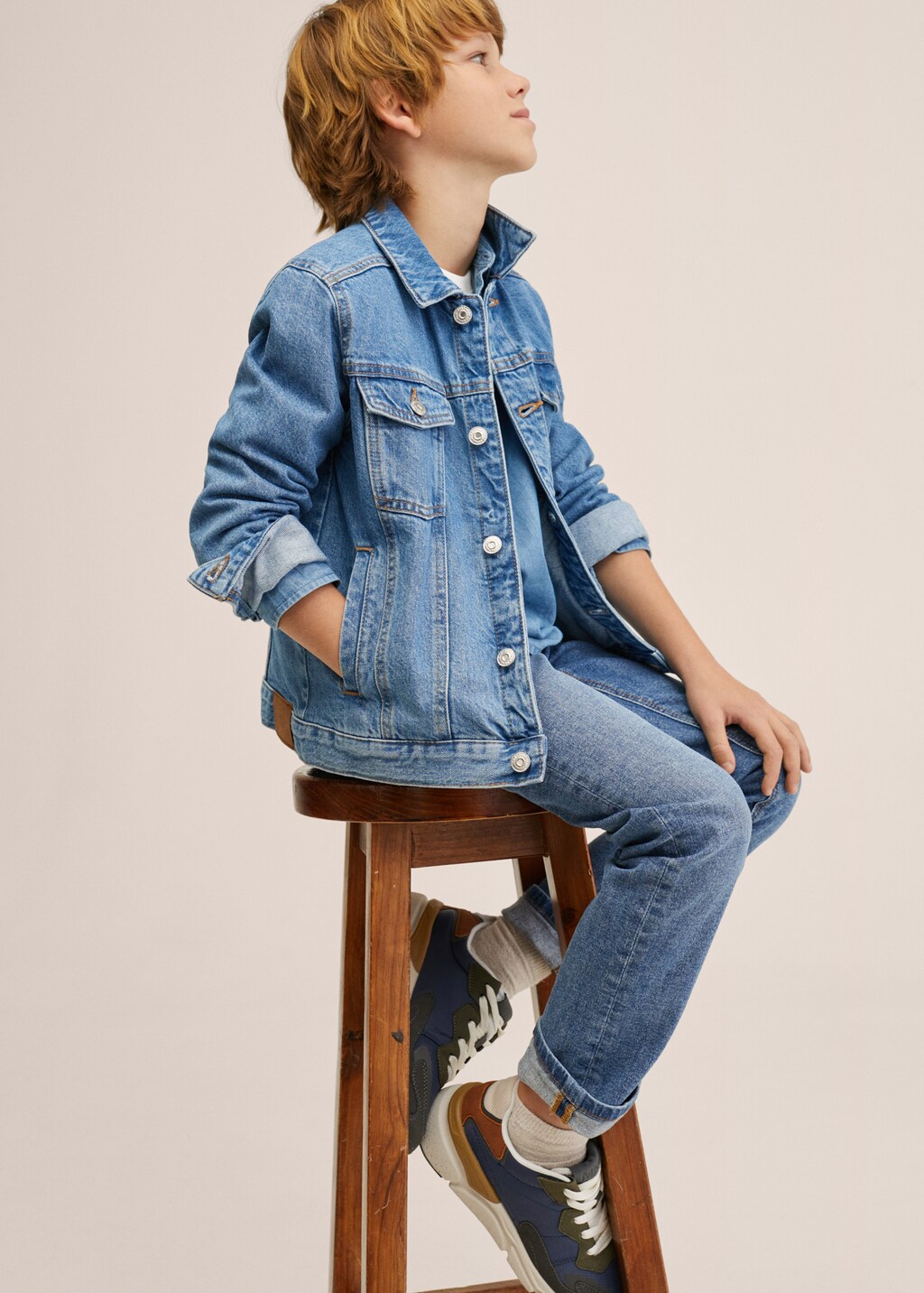 Diseño estándar. Diseño recto. Tejido de algodón sostenible. Tejido de denim. Diseño medio. Diseño recto. Cuello clásico. Manga larga con puños abotonados. Dos bolsillos de parche con botón en la parte delantera. Dos bolsillos laterales. Cierre de botones en la parte delantera.