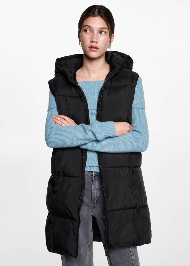 Chaleco acolchado capuchaHistórico de preciosPrecio inicial tachado [35,99 € ]35,99 €Precio actual [27,99 € ]27,99 €-22 %Selecciona un colorNegroSelecciona tu tallaXXSNo disponible ¡Lo quiero!XSNo disponible ¡Lo quiero!SNo disponible ¡Lo quiero!MNo disponible ¡Lo quiero!LNo disponible ¡Lo quiero!XLNo disponible ¡Lo quiero!MedidasAvísameDiseño acolchado. Diseño recto. Diseño largo. Cuello alto. Sin mangas. Dos bolsillos frontales. Cierre de cremalleraDetalles, composición y cuidadosDisponibilidad en tienda