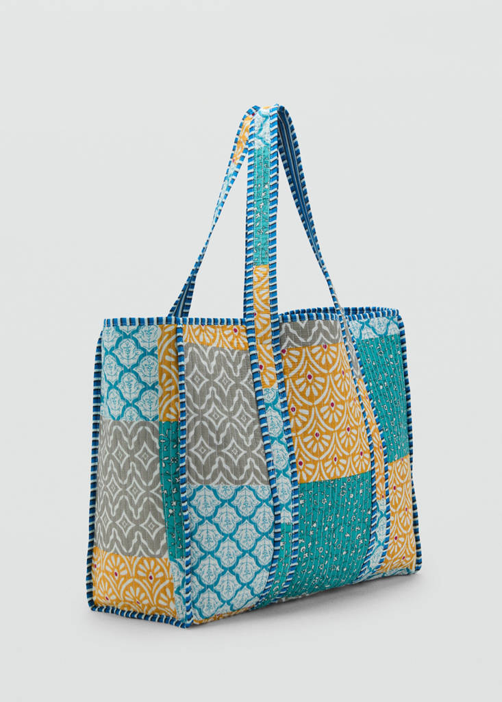 100% Algodón. Forro interior. Bolso grande. Diseño patchwork. Estilo shopper. Dos asas integradas