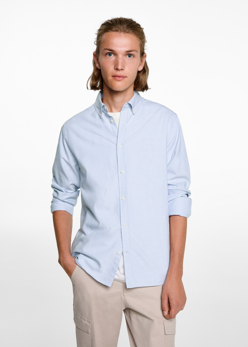100% algodón. Diseño recto. Regular fit. Estilo Oxford. Cuello camisero. Manga larga con puños abotonados. Puños abotonados. Cierre delantero con botones. Unisex. Manga larga. Cierre delantero. Cierre de botones. La modelo lleva una talla M. El modelo lleva una talla L.