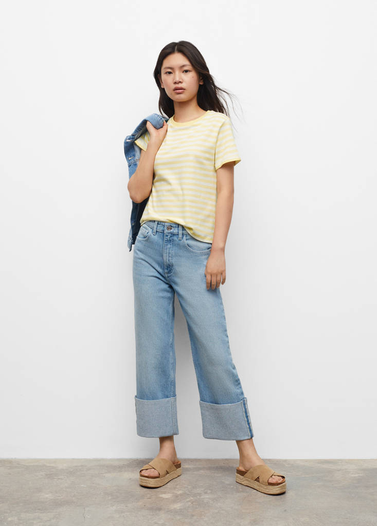 Camiseta algodón rayasHistórico de preciosPrecio inicial tachado [9,99 € ]9,99 €Precio actual [7,99 € ]7,99 €-20 %Selecciona un colorAmarillo pastelSelecciona tu tallaXSNo disponible ¡Lo quiero!SNo disponible ¡Lo quiero!MNo disponible ¡Lo quiero!LNo disponible ¡Lo quiero!MedidasAvísame100% Algodón. Diseño de rayas. Diseño recto. Cuello redondo. Manga corta. La modelo mide 164 cm y lleva una talla S. Colección TeenDetalles, composición y cuidadosDisponibilidad en tienda