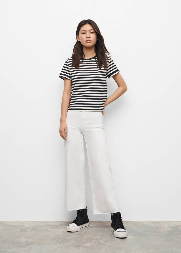 Camiseta algodón rayasHistórico de preciosPrecio inicial tachado [9,99 € ]9,99 €Precio actual [7,99 € ]7,99 €-20 %Selecciona un colorNegroSelecciona tu tallaXSNo disponible ¡Lo quiero!SNo disponible ¡Lo quiero!MNo disponible ¡Lo quiero!LNo disponible ¡Lo quiero!MedidasAvísame100% Algodón. Diseño de rayas. Diseño recto. Cuello redondo. Manga corta. La modelo mide 164 cm y lleva una talla S. Colección TeenDetalles, composición y cuidadosDisponibilidad en tienda