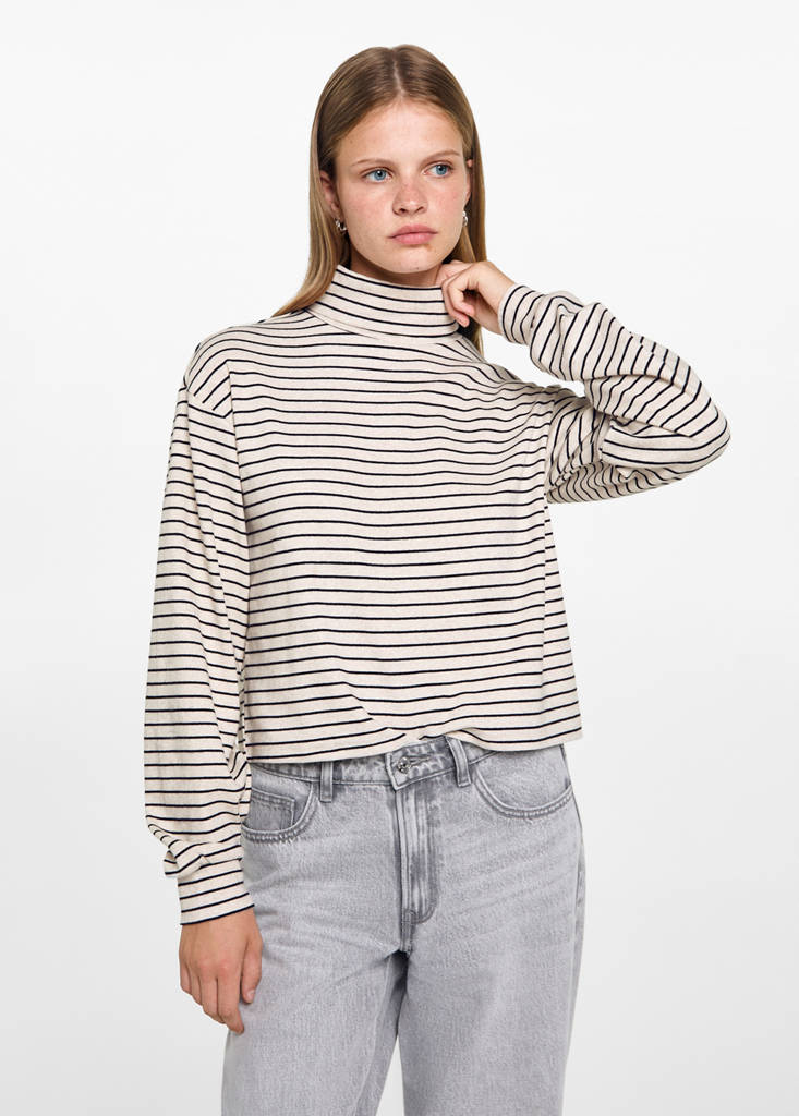 Camiseta rayas cuello altoHistórico de preciosPrecio inicial tachado [19,99 € ]19,99 €Segundo precio tachado [15,99 € ]15,99 €Precio actual [7,99 € ]7,99 €-60 %Selecciona un colorArenaSelecciona tu tallaXXSXSNo disponible ¡Lo quiero!SNo disponible ¡Lo quiero!MNo disponible ¡Lo quiero!LNo disponible ¡Lo quiero!MedidasAñadirCuello alto. Diseño recto. Diseño de rayas. Manga larga. Vuelta a clase. Tejido con algodónDetalles, composición y cuidadosDisponibilidad en tiendaCualidades del artículoAlgodón recicladoAl menos 20 %Esta fibra se obtiene a partir de restos textiles pre y post consumo que se transforman en nuevos tejidos.