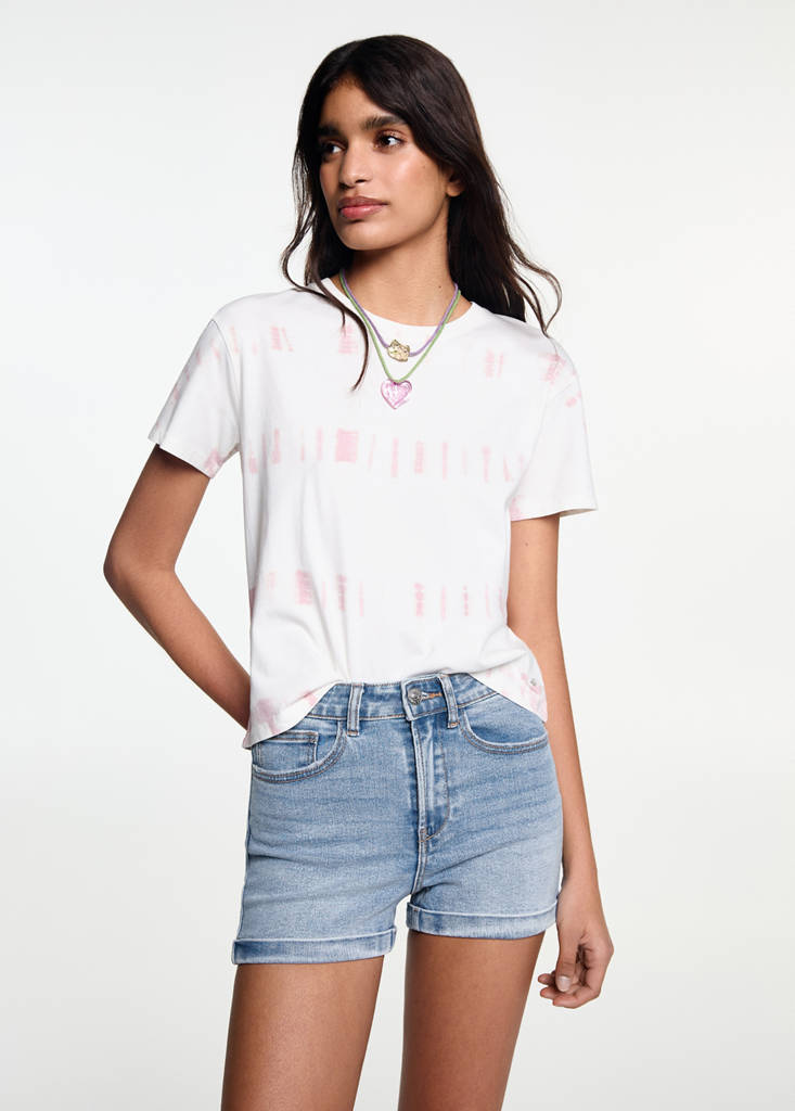 Tejido de algodón estilo tejano vaquero. Diseño recto. Diseño corto. Cinco bolsillos. Cierre de cremallera y botón