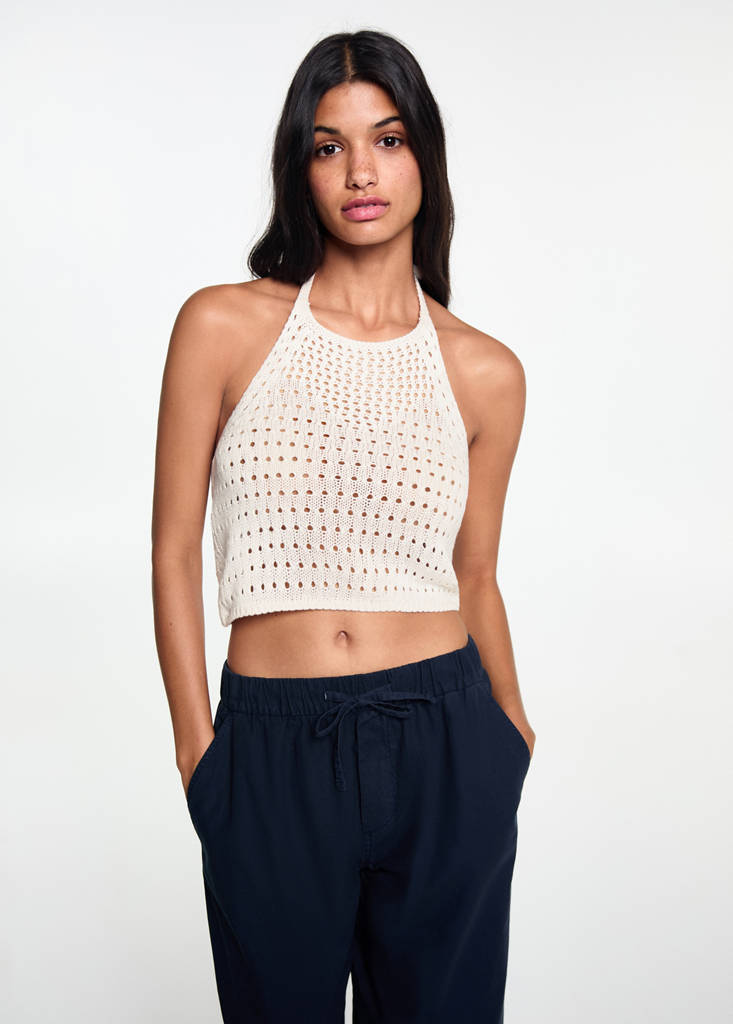 Top crochet cuello halterHistórico de preciosPrecio inicial tachado [17,99 € ]17,99 €Segundo precio tachado [13,99 € ]13,99 €Precio actual [2,99 € ]2,99 €-83 %Selecciona un colorCrudoSelecciona tu tallaXXSNo disponible ¡Lo quiero!XSNo disponible ¡Lo quiero!SNo disponible ¡Lo quiero!MNo disponible ¡Lo quiero!L¡Últimas unidades!AñadirTejido de punto calado. Diseño crochet. Diseño crop. Cuello halter. Sin mangas. Cierre de lazo en el cuelloDetalles, composición y cuidadosDisponibilidad en tienda