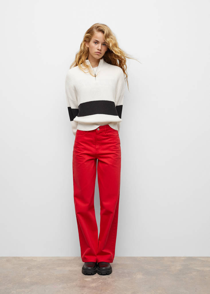 Tejido de algodón estilo tejano vaquero. Diseño wideleg. Diseño recto. Caña ancha. Tiro alto. Tejido ligero. Cinco bolsillos. Trabillas. Cierre de cremallera y botón. Colección Teen