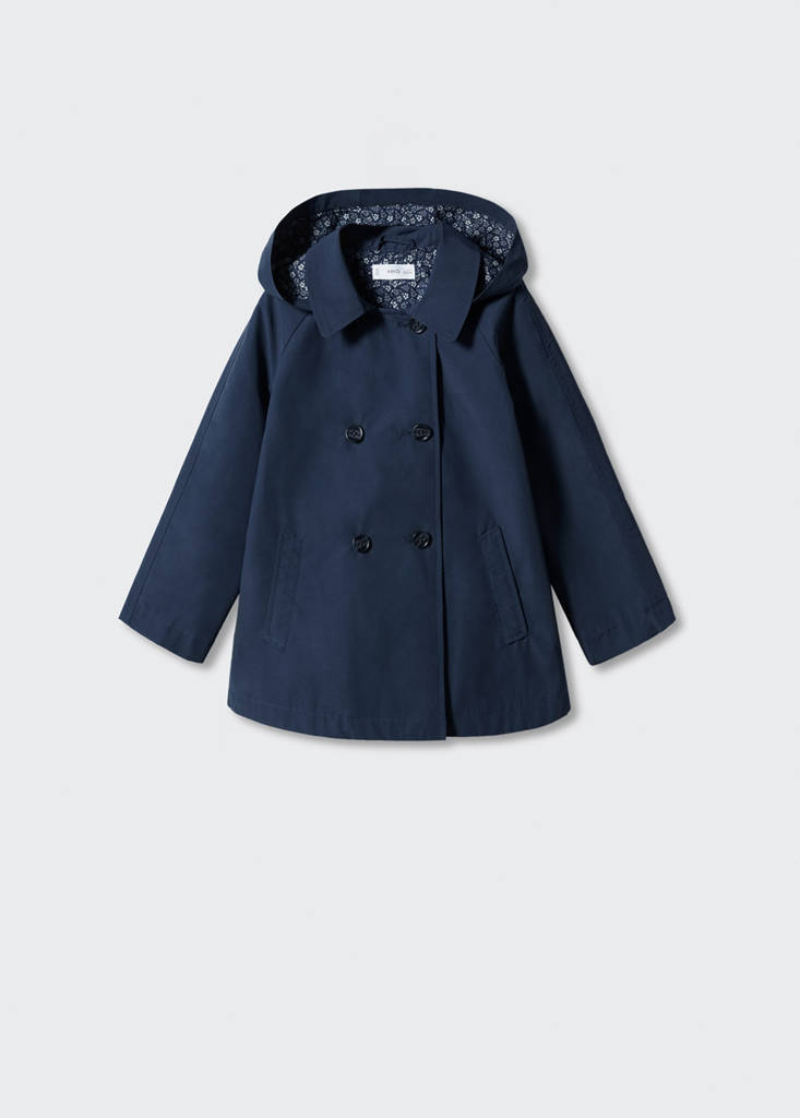 Hooded trenchPrice historyInitial price struck through [€ 35,99 ]€ 35,99Current price [€ 27,99 ]€ 27,99-22 %Select a colourNavySelect your size9-12 months (80cm)Not available. I want it!12-18 months (86cm)Not available. I want it!18-24 months (92cm)Not available. I want it!2-3 years (98cm)Not available. I want it!3-4 years (104cm)Not available. I want it!4-5 years (110cm)Not available. I want it!DimensionsNotify meFabric with cotton. Evasé design. Hood. Long sleeve. Button up. Two side pockets. Inner liningDetails, composition and careStore availability