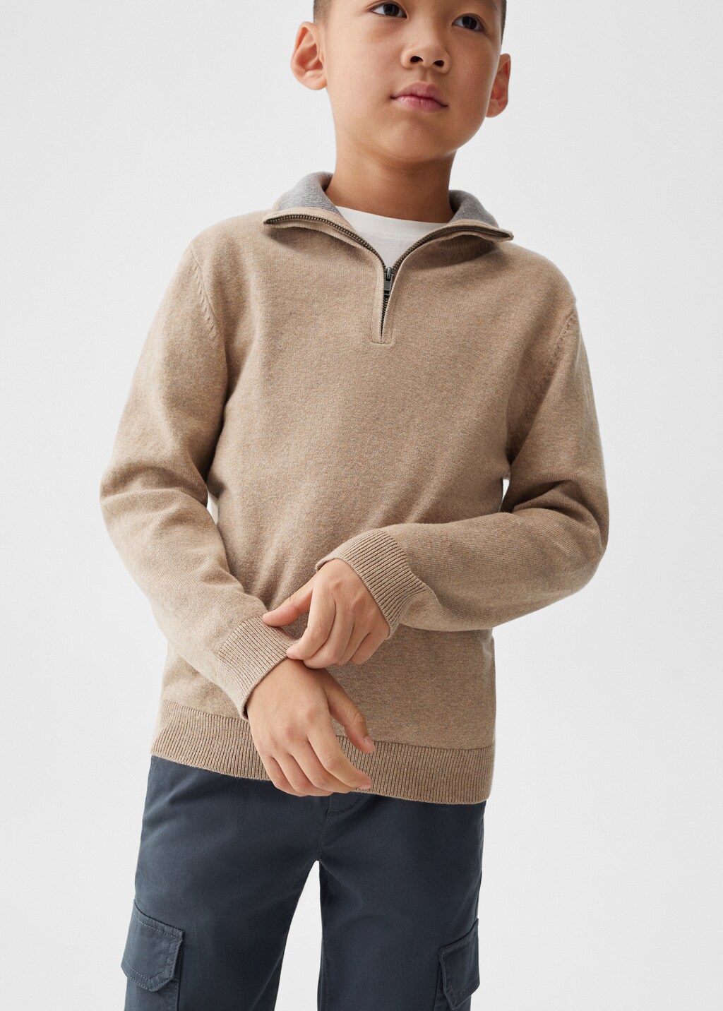 Zip neck jumperPrice historyInitial price struck through [€ 22,99 ]€ 22,99Current price [€ 17,99 ]€ 17,99-22 %Select a colourMedium BrownSelect your size5-6 years (116cm)Not available. I want it!7-8 years (128cm)Not available. I want it!9-10 years (140cm)Not available. I want it!11-12 years (152cm)Not available. I want it!13-14 years (164cm)Not available. I want it!Size guideNotify meDescriptionBasics Collection. Cotton fabric. Knit fabric. Straight Design. Long design. High-neck zip. Long sleeve. Size: 28.5x8x2 cm.See detailsSize guideShare
