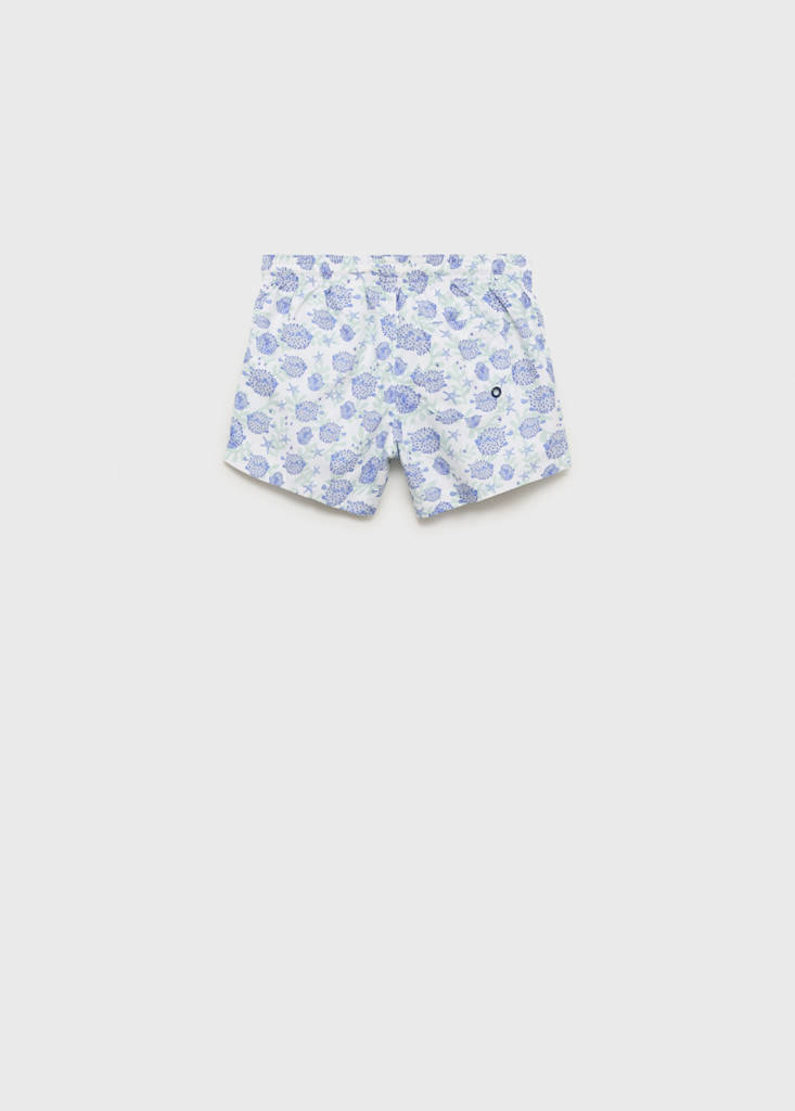 Straight design. Short design. Marine print. Back patch pocket. Contrast lace-up. Adjustable elasticated waist. Spa collection
