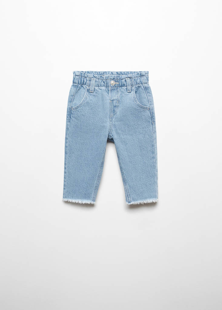 Paperbag jeansPrice historyInitial price struck through [€ 19,99 ]€ 19,99Current price [€ 15,49 ]€ 15,49-23 %Select a colourLight BlueSelect your size9-12 months (80cm)Not available. I want it!12-18 months (86cm)Not available. I want it!18-24 months (92cm)Last few items!2-3 years (98cm)Not available. I want it!3-4 years (104cm)Not available. I want it!4-5 years (110cm)Not available. I want it!MeasurementsAddStraight design. Paperbag. Two pockets with flaps. Elastic paperbag waistband. Medium. Frayed hem. One press stud fasteningDetails, composition and careStore availabilityItem qualitiesRecycled cottonAt least 20 %This fibre is obtained from pre- and post-consumer textile waste that is transformed into new fabrics.