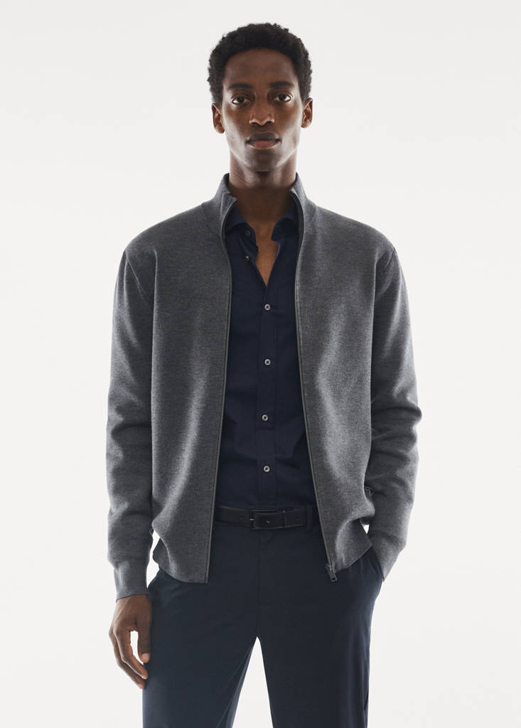 Perkins-neck cardigan with zip