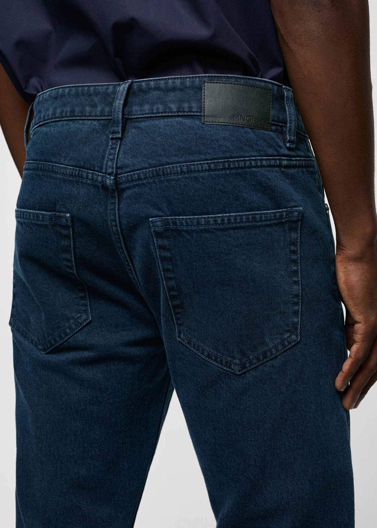 ESSENTIALS: Made to last. Crop design. Tapered fit: wide cut at the top that narrows from the knee to the ankle. Denim-style cotton fabric. Zip and button fastening. Belt loops. Two side pockets. Coin pocket. Two patch pockets at the back. Denim jeans style.