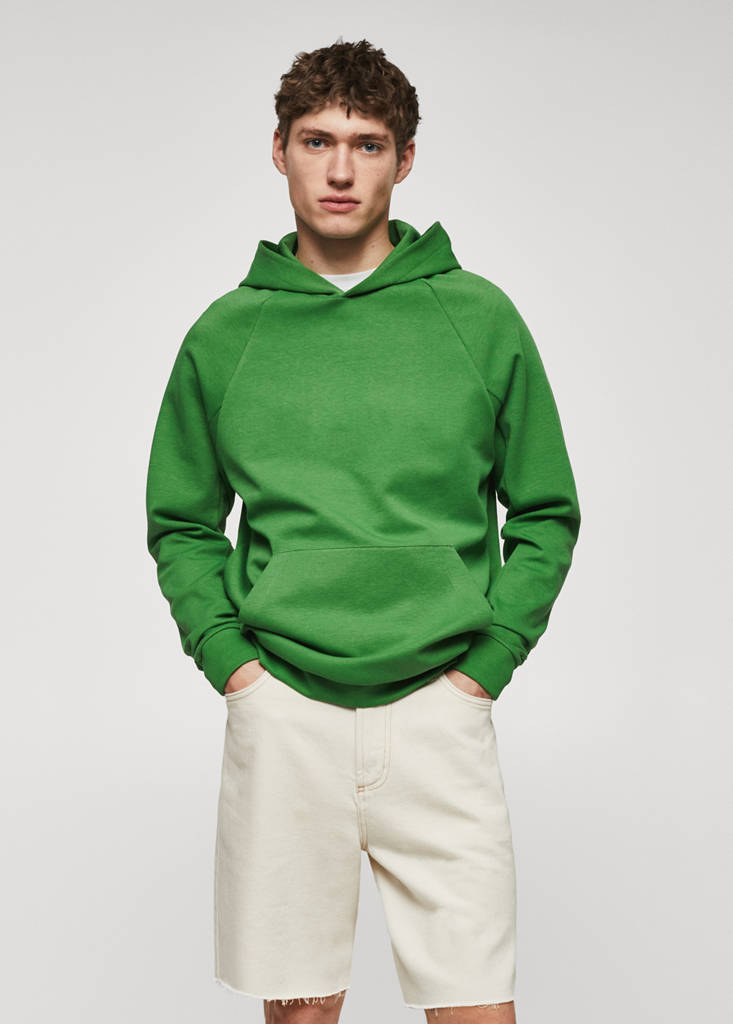 Kangaroo pocket hoodiePrice historyInitial price struck through [€ 45,99 ]€ 45,99Current price [€ 34,99 ]€ 34,99-24 %Select a colourGreenThe model is wearing size M and is 189cm tall.Select your sizeXSNot available. I want it!SNot available. I want it!MNot available. I want it!LNot available. I want it!XLNot available. I want it!XXLNot available. I want it!DimensionsNotify meRegular fit. Cotton-blend fabric. With hood. Long sleeve with elastic cuffs. Raglan sleeve. Pouch pockets. Hem with elastic band. Basics CollectionDetails, composition and careStore availability