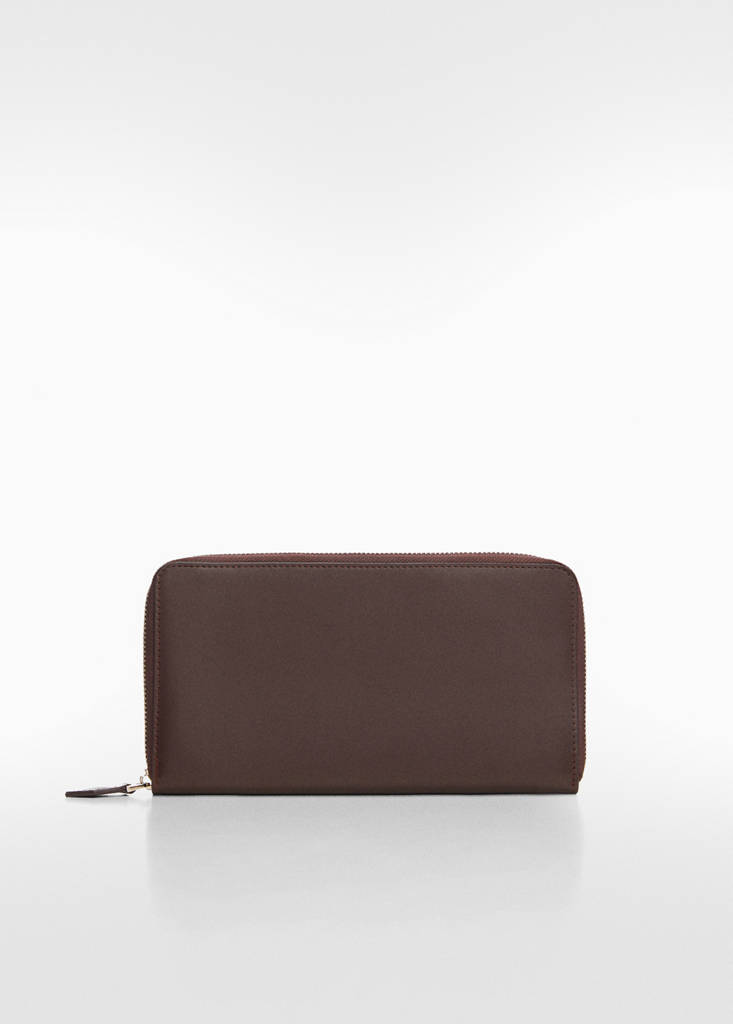 Includes RFID protection against contactless theft. Nappa faux-leather. Large. Made of recycled materials. Main compartment with zip closure. Multiple card slots. Central compartment for banknotes