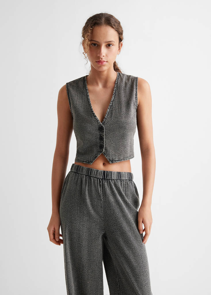Textured fabric. Wide-leg design. Elasticated waistband. No Fastening