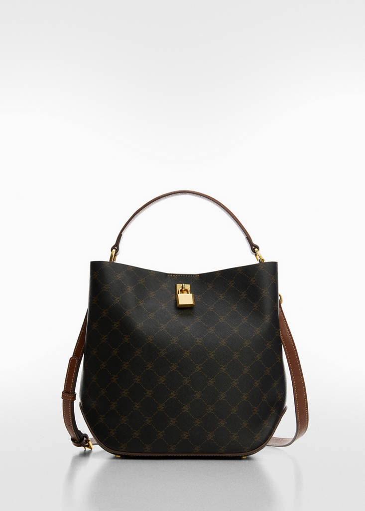 Large. Shopper style. Adjustable and detachable long strap. Integrated short handle. Magnetic metallic fastening. Zip fastening. Padlock detail. Inner lining