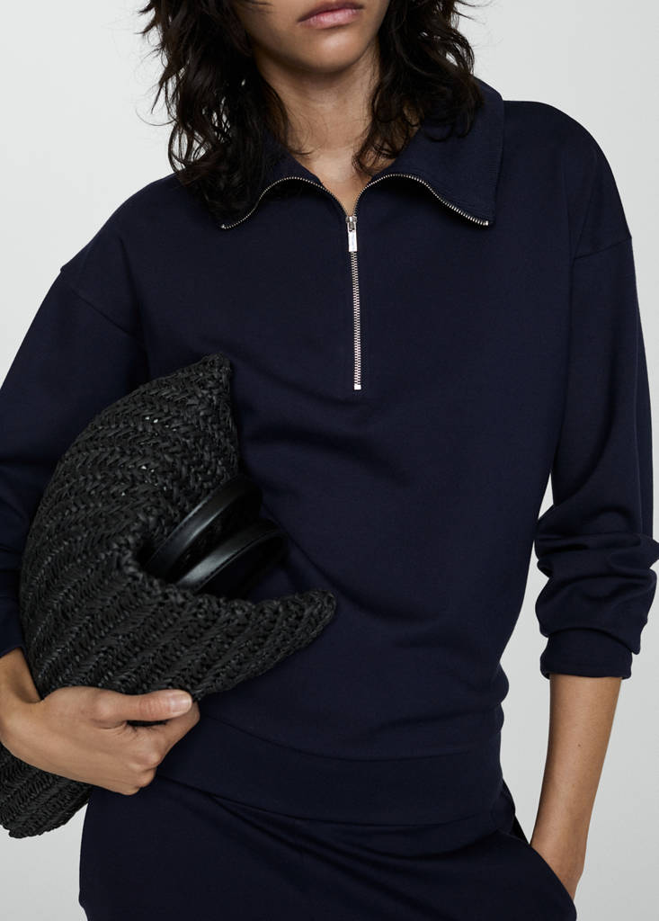 Perkins-neck sweater with zipPrice historyInitial price struck through [€ 39,99 ]€ 39,99Current price [€ 30,99 ]€ 30,99-23 %Select a colourDark NavyThe model is wearing size S and is 179cm tall.Select your sizeXXSNot available. I want it!XSNot available. I want it!SNot available. I want it!MNot available. I want it!LNot available. I want it!XLLast few items!XXLNot available. I want it!MeasurementsAddOversized design. Crop design. Roll neck. Long sleeves. Decorative seams. Zip fastening. Total lookDetails, composition and careStore availability