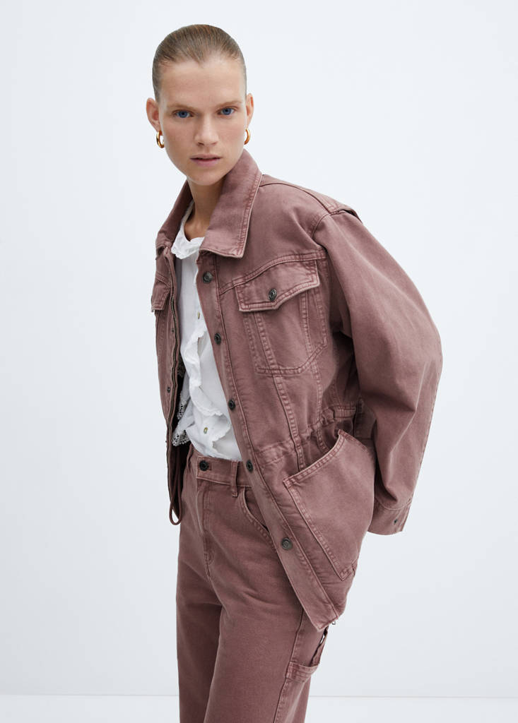 Denim-style cotton fabric. Straight design. Oversized design. Adjustable design. Shirt collar. Long sleeves with buttoned cuffs. Zip and button fastening. Adjustable inner drawstring. Twin buttoned flap pockets at front. Two patch pockets at the front. Total look. 100% cotton fabric