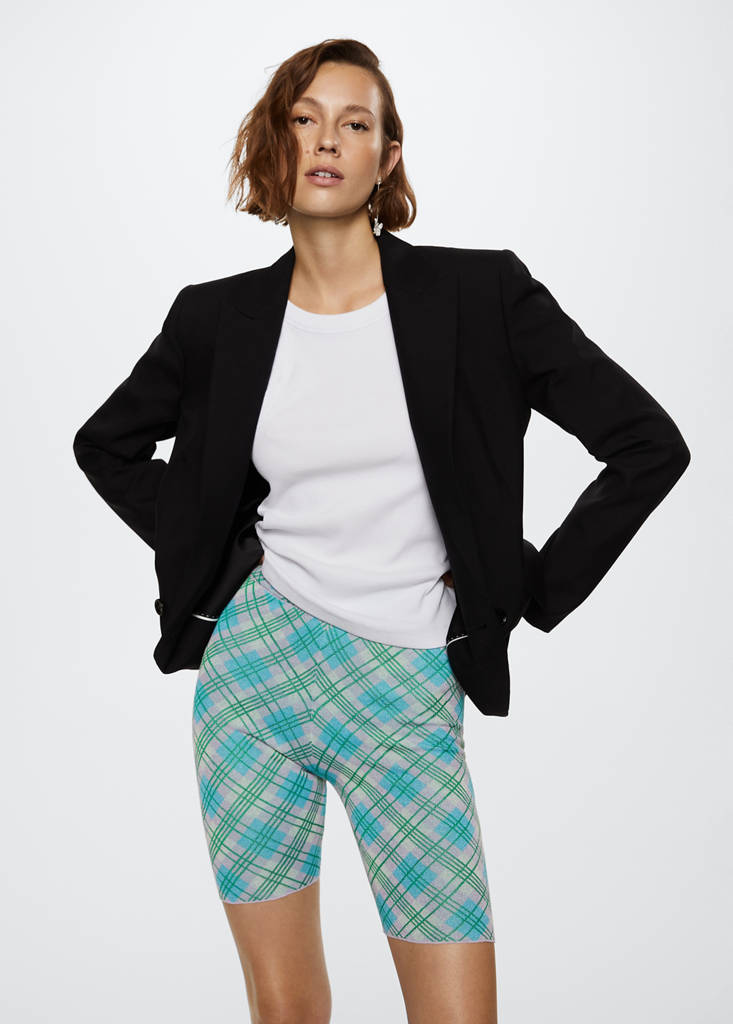 Cotton-blend fabric. Fine knit fabric. Checked print. Short design. Fitted design. Skinny fit. Elastic waist. Co-ord